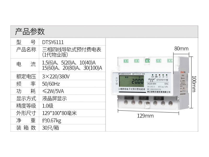 DTSY6111型三相導軌式預(yù)付費電能表(7P)