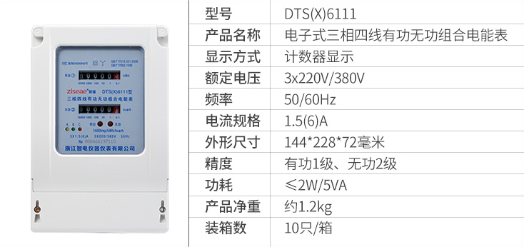 DTS(X)6111、DSS(X)6111型三相電子式有功無(wú)功組合電能表(以下簡(jiǎn)稱電能表),是為了適應(yīng)電網(wǎng)改造設(shè)計(jì)開發(fā)的有功、無(wú)功組合式電能表。它具有較高的準(zhǔn)確度和可行性。本產(chǎn)品制造標(biāo)準(zhǔn)符合GB/T17215.321-2008《1級(jí)和2級(jí)靜止式交流有功電能表》、GB/T17215.323-2008、DL/T614-1997《多功能電能表》、DL/T645-1997《多功能電能表通信規(guī)約》等電力行業(yè)標(biāo)準(zhǔn)對(duì)三相靜止式電能表全部技術(shù)要求,是對(duì)需要進(jìn)行無(wú)功電量考核的企業(yè)、變電站或電廠理想的選擇,亦適合輸配電或配網(wǎng)自動(dòng)化用表。本產(chǎn)品可供計(jì)量參比頻率為50Hz電網(wǎng)中的三相交流有功和無(wú)功電能,并能進(jìn)行正、反向電能計(jì)量和紅外及RS485通訊功能。其特點(diǎn)是精度高、可靠性好、寬負(fù)荷、低功耗、誤差曲線平直、抗干擾能力強(qiáng)。