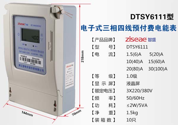 DTSY6111三相預付費電表系我公司采用集成電路,16位A/D轉(zhuǎn)換、數(shù)字乘法器、應用數(shù)字采樣處理技術并由單片機處理系統(tǒng)進行數(shù)據(jù)的采集、處理和保存及應用SMT工藝制造的新型儀表。適用于計量額定頻率為50Hz或60Hz的三相三線或三相四線交流電網(wǎng)中有功電能的消耗。