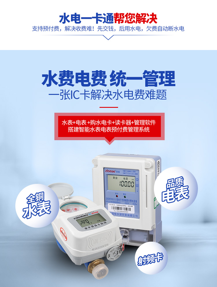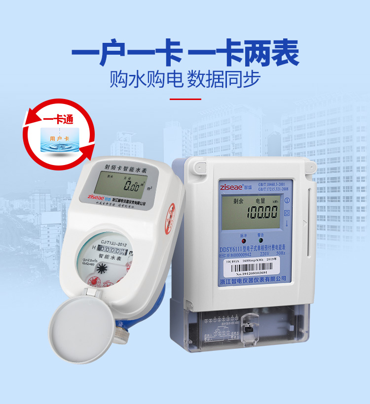 我公司生產的智能水表與電能表實現一卡通,用戶只需一張卡,即可同時管理家中所用的電表、水表。